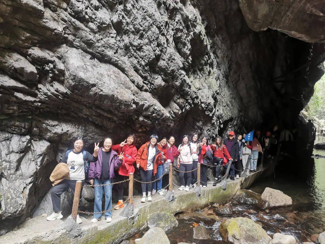 活動中,女教職工們沿著蜿蜒的古木棧道拾級而上,走在玻璃橋棧道上,透過全鋼化的玻璃,享受到“空中透明漫步”的驚心與快感,欣賞了萬石瀑布、地下河等景點,感受了大自然的鬼斧神工,大家紛紛駐足拍照,記錄下這美好的瞬間。